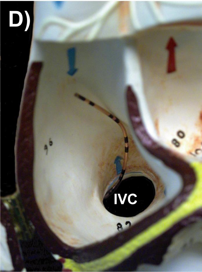 - Placement for IVC, with the proximal catheter end just superior to the annulus of the inferior vena cava, and the electrodes against the posterior wall.