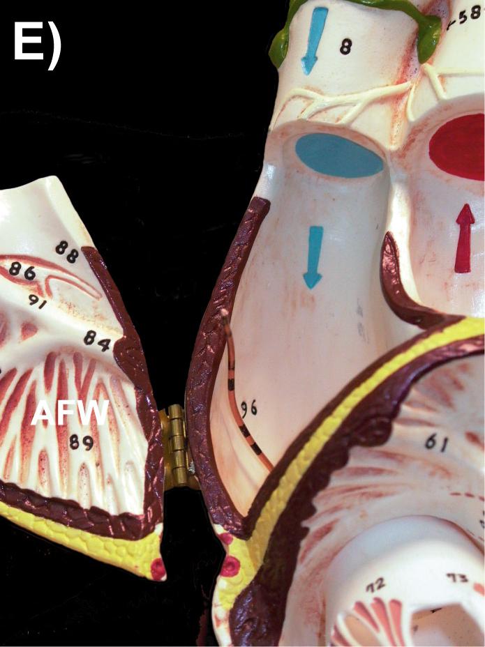 - Placement for AFW, with the catheter against the atrial free wall (which is hinged open here).
